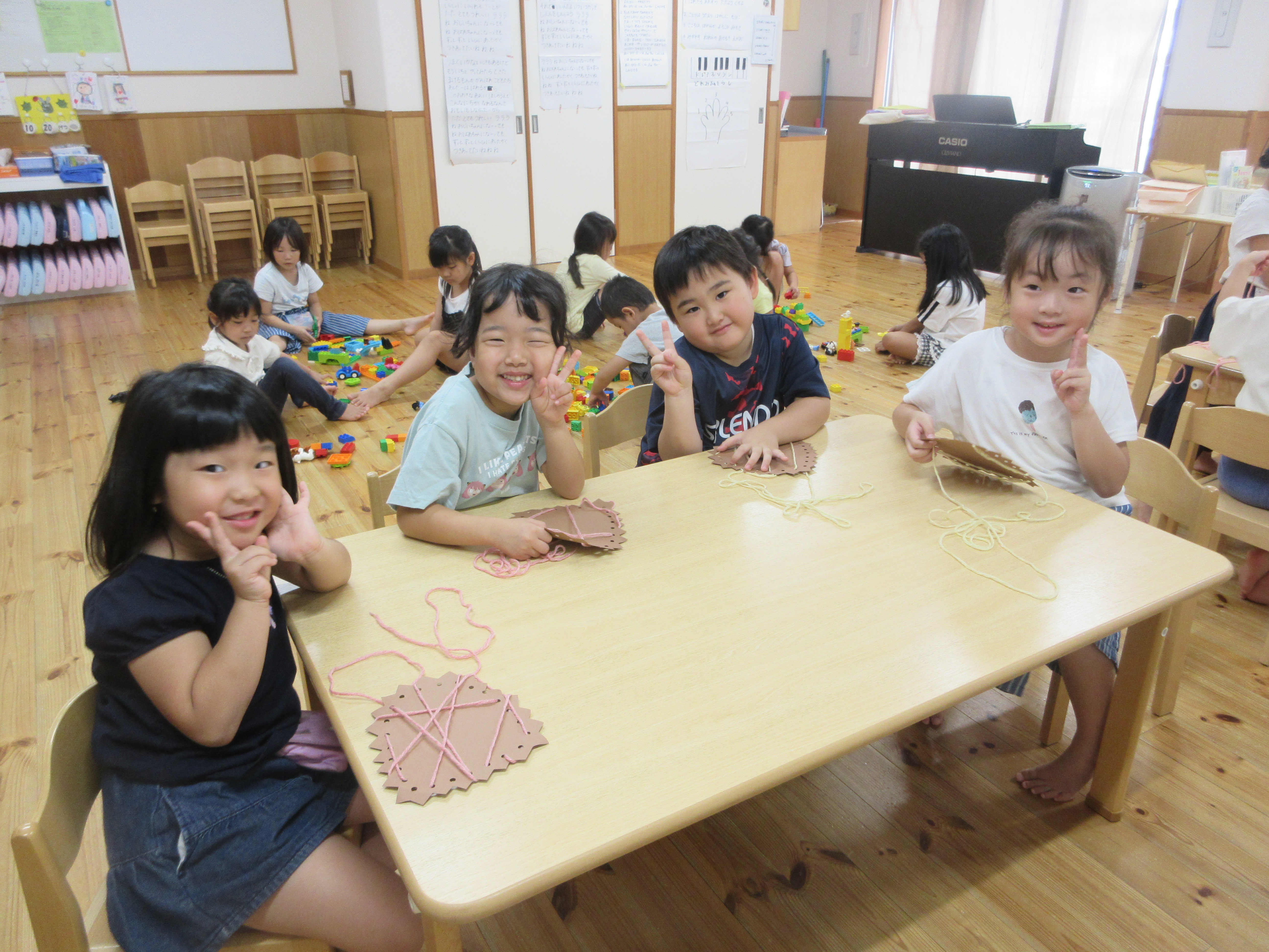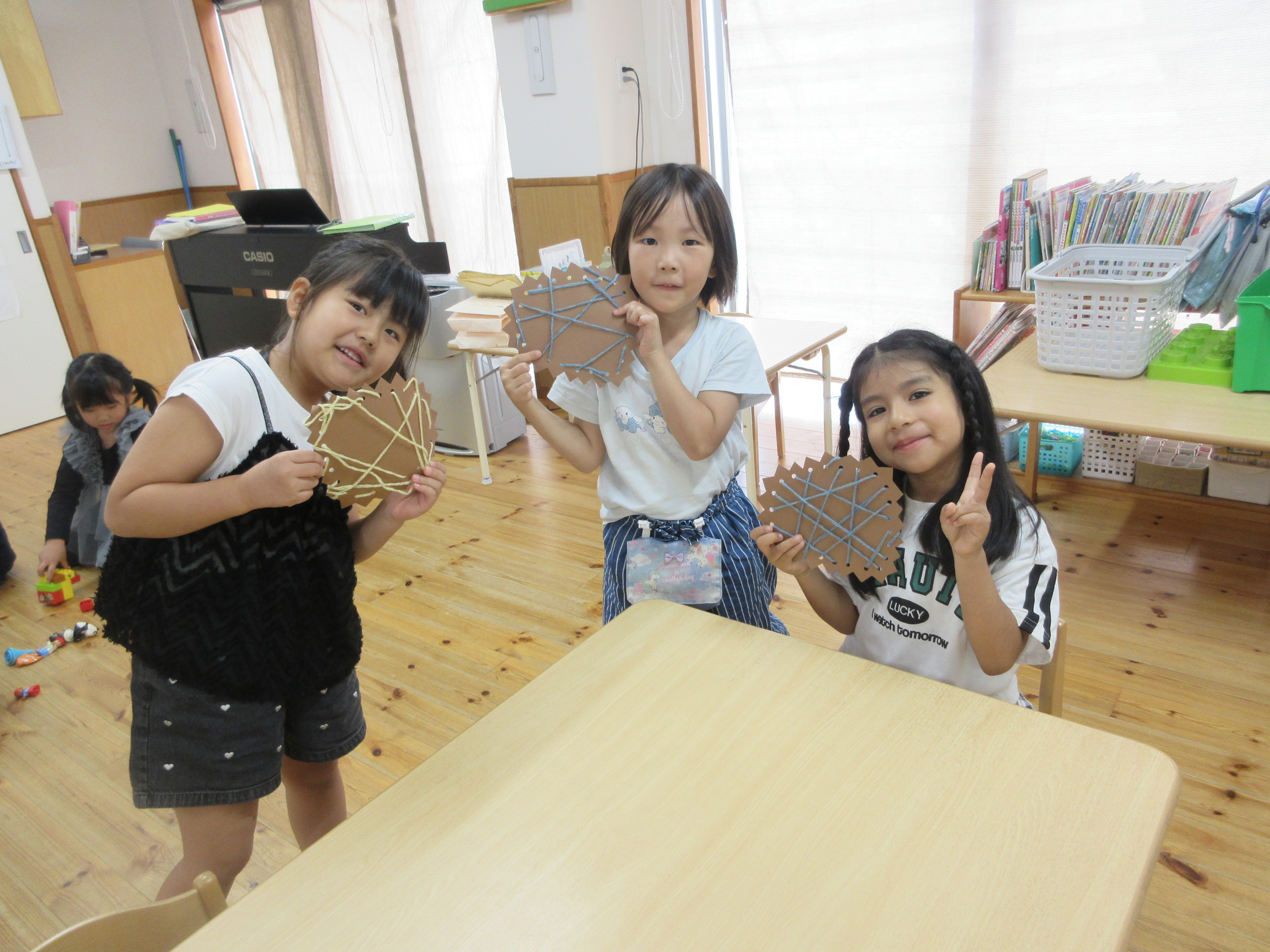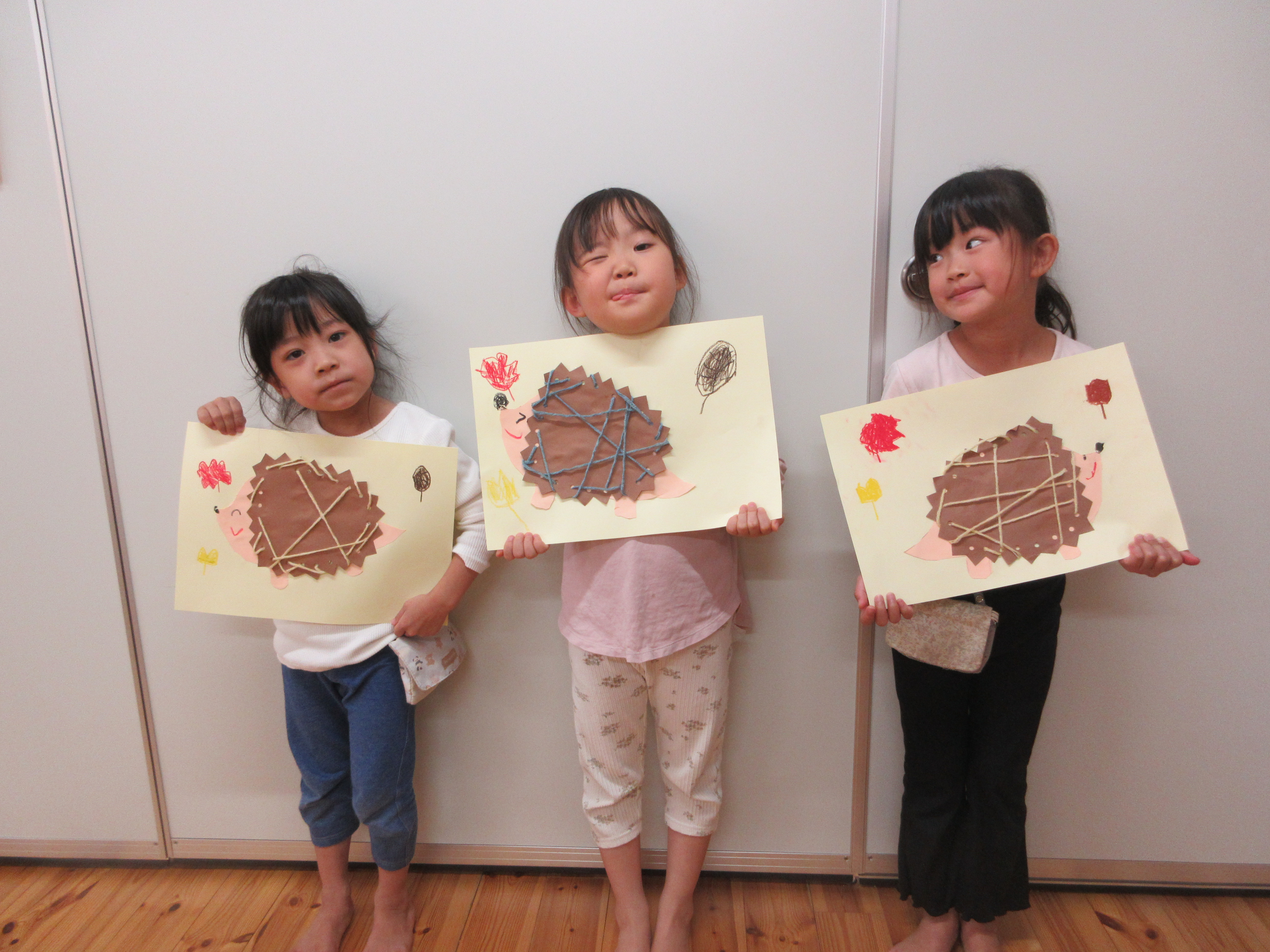 壁面製作をしたよ(くまぐみ) 2025年 10月 21日 Tue 認定こども園 ふかつ 11月に飾る、壁面製作をしました。 ハリネズミの体にも、毛糸で糸通しをしました。 少し難しそうにする子やどの穴に通そうか真剣に考えながらする子など、様々でした。 個性豊かで可愛いハリネズミが完成しました。 くまぐみ
