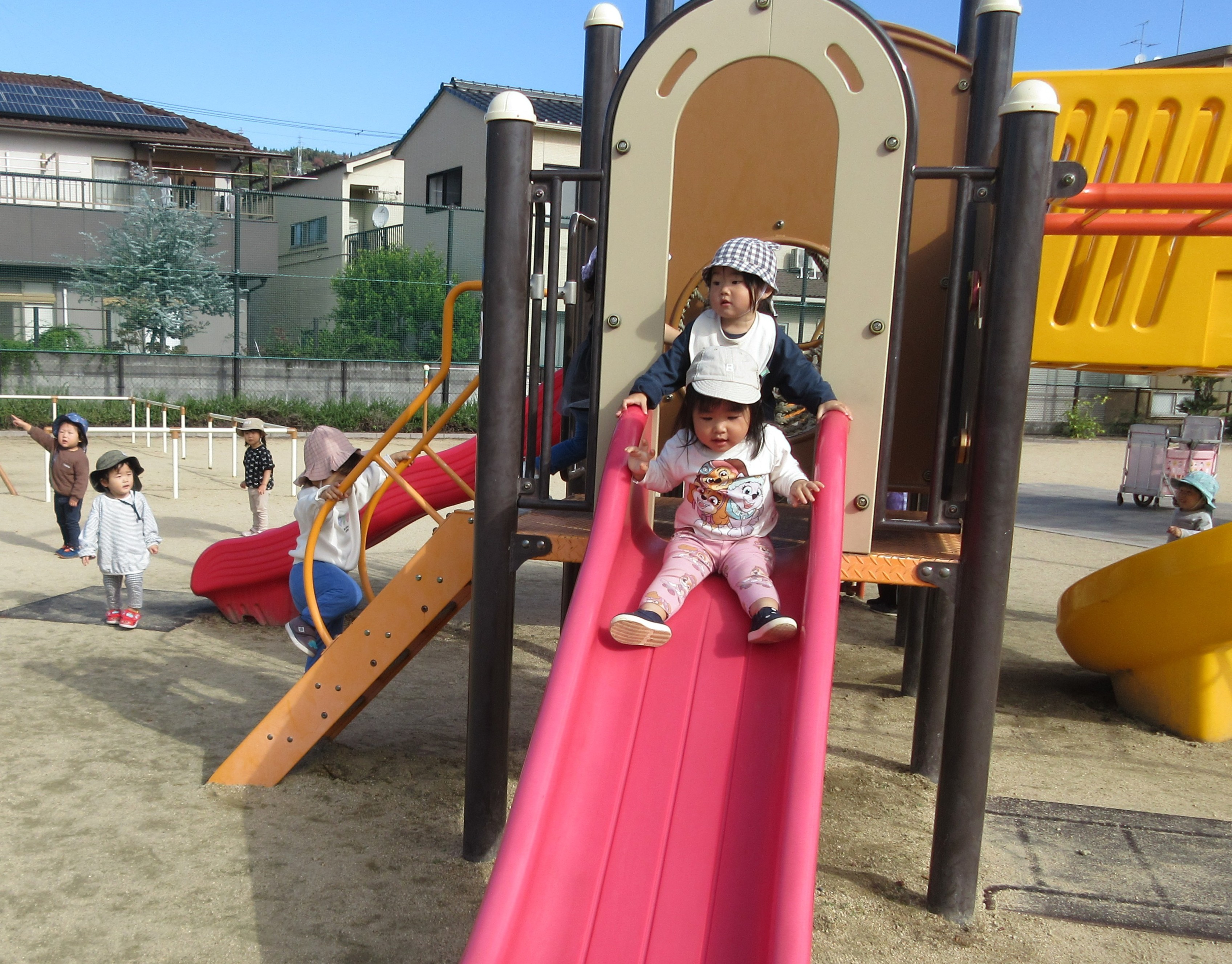 公園へ着くと階段やロープの網をのぼり、すべり台へと行きました。