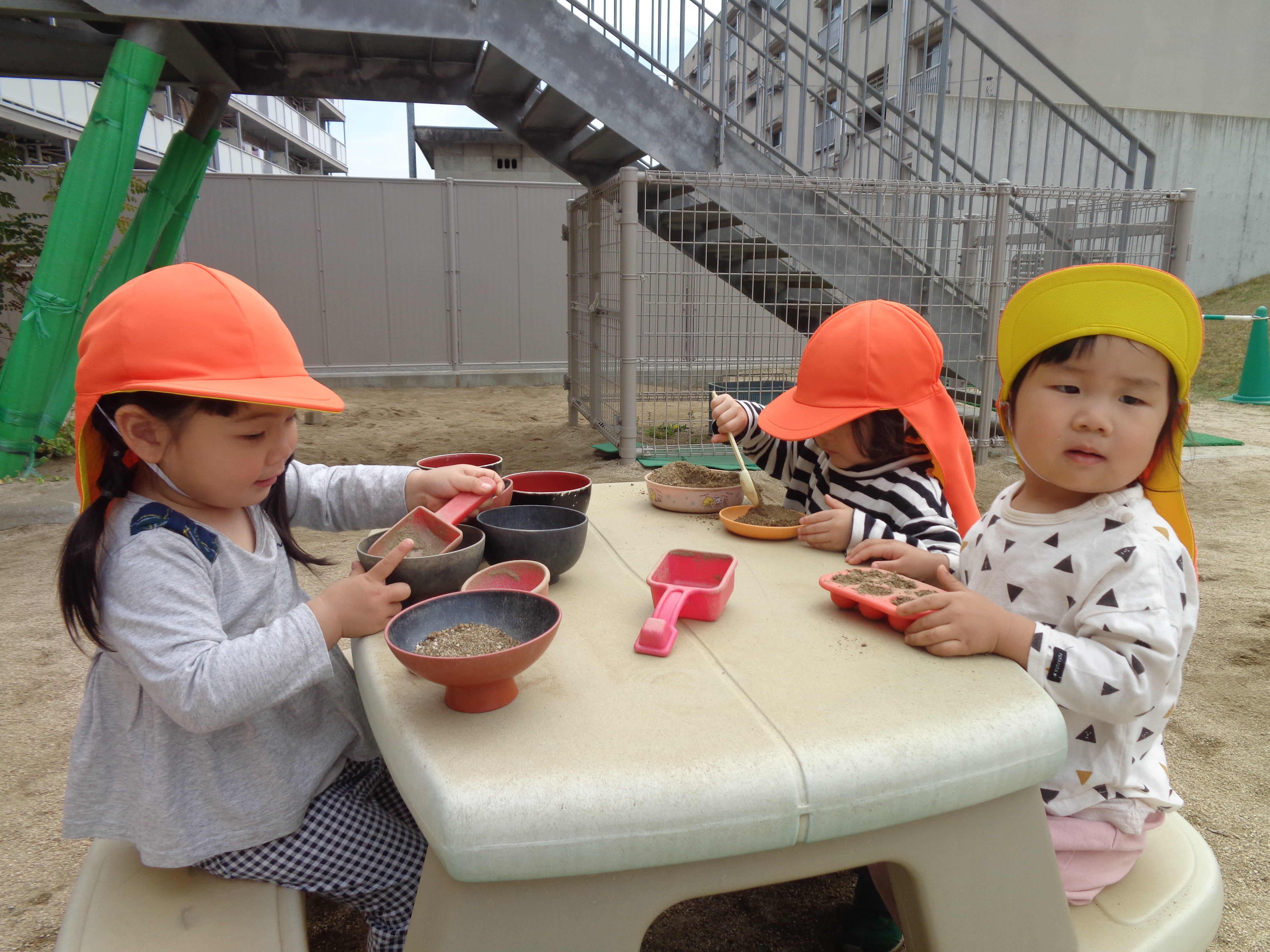 天気の良い日は外に出て、おままごとやすべり台などで遊んでいます。