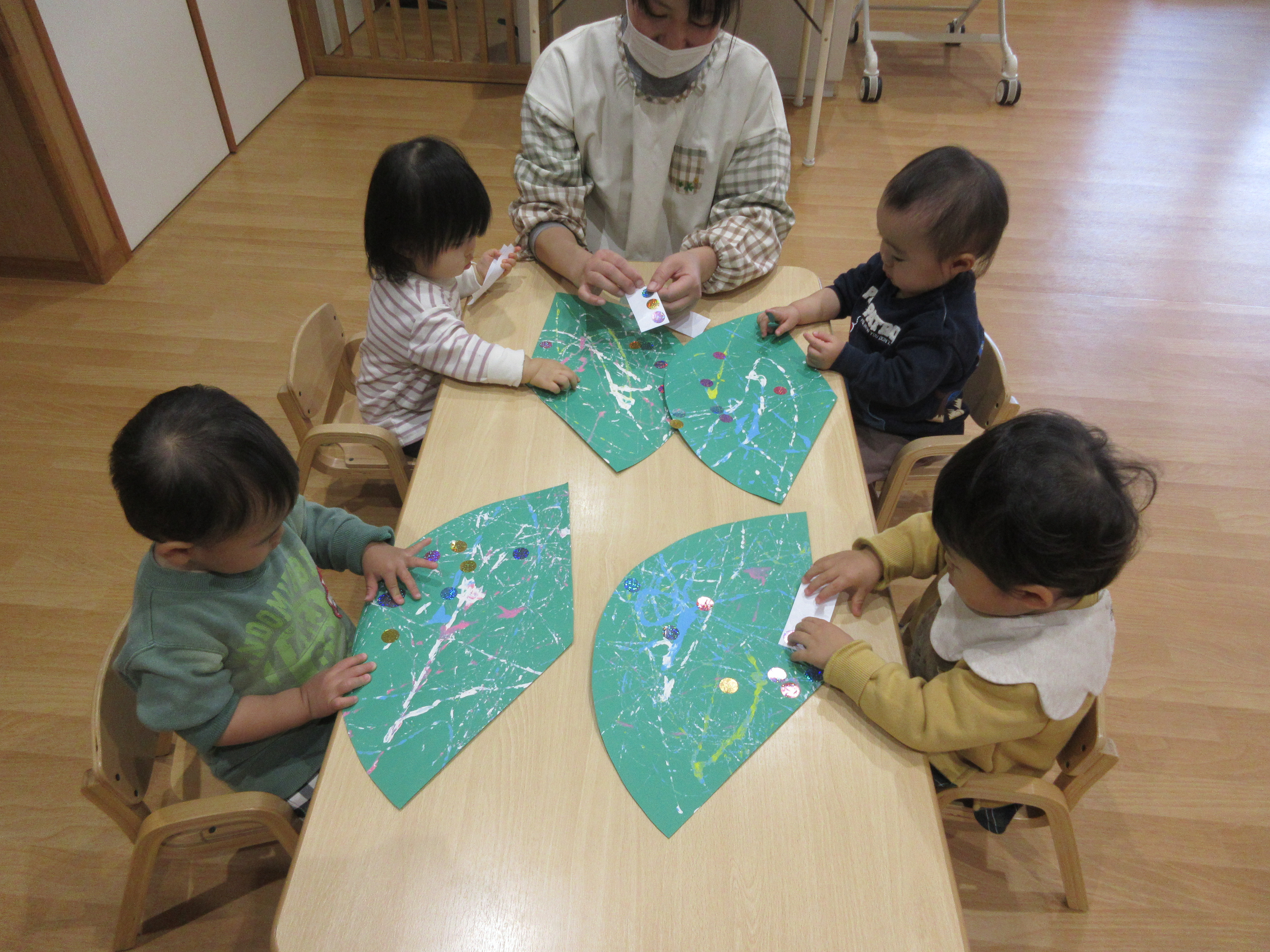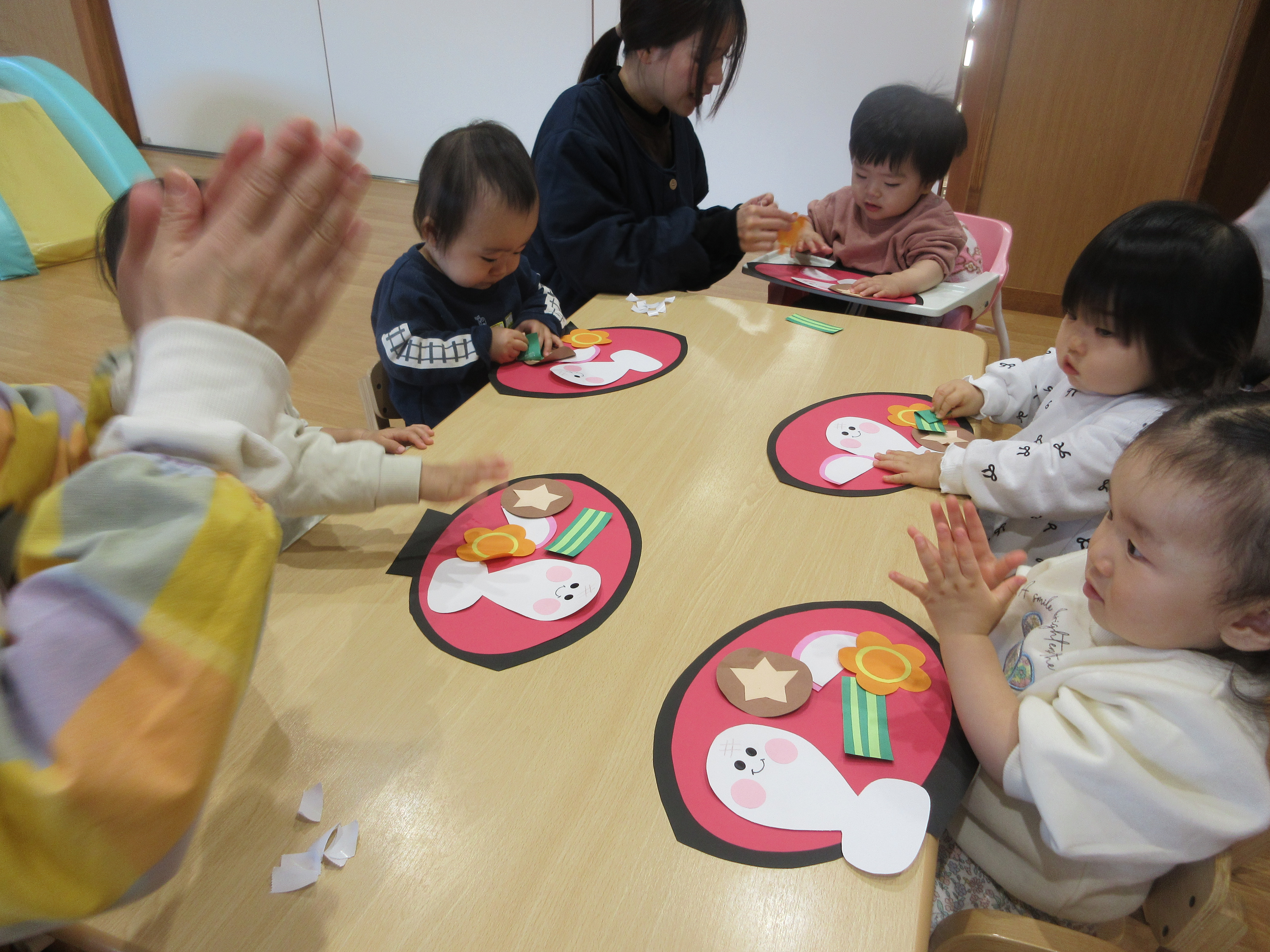 ペタペタ貼って出来ちゃった(ひよこぐみ) 2025年 12月 16日 Tue 管理者 クリスマスの三角帽子を作りました。 指先に集中して、シールを貼る姿を見て先生たちもびっくりしました。 出来上がった帽子をかぶって、サンタさんとハイチーズ。 1月の壁面製作でお雑煮を作りました。 お椀に自分で具を入れてクッキング! お正月の準備もできました。 ひよこぐみ